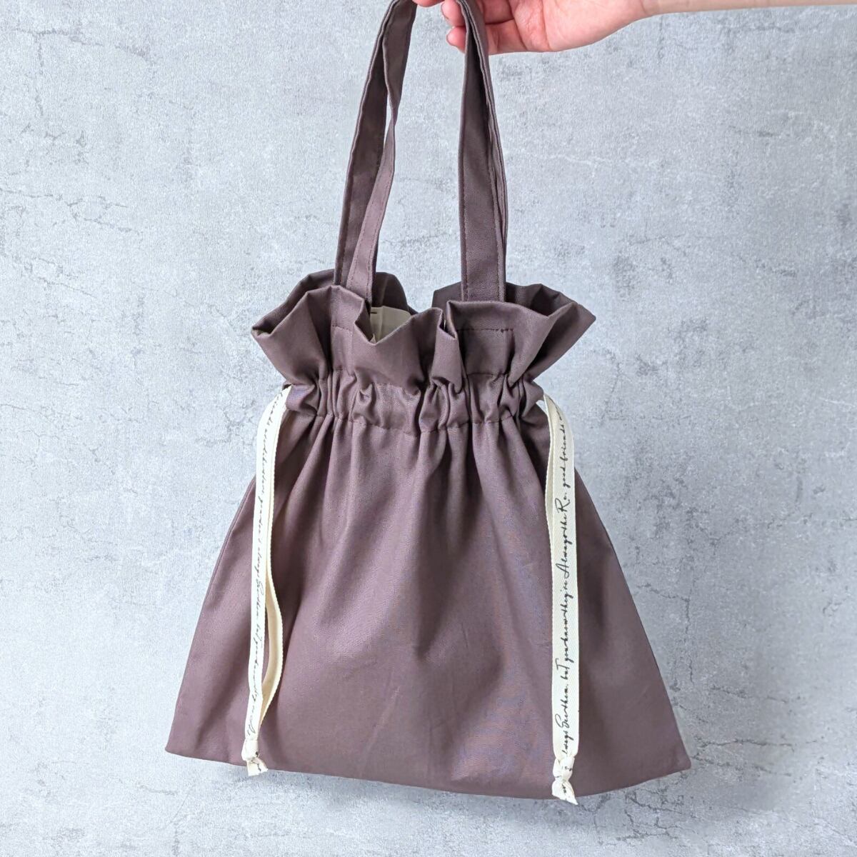 巾着バッグ 軽い 軽量 ショルダー 手提げ 肩掛け おしゃれ 流行り レディース シンプル 無地 大人 a4 カジュアル かわいい ママ トート ブラウン 茶 プレゼント 敬老の日 | m.works